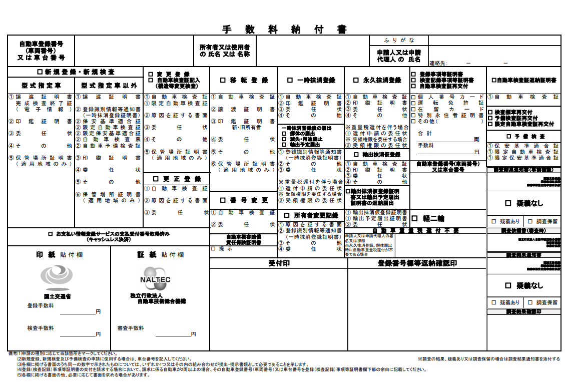 その場合、運輸支局内の印紙販売窓口へ走り、納付書を記入し、再び登録窓口の列に並び直す…という大幅な時間のロスが発生してしまいます。